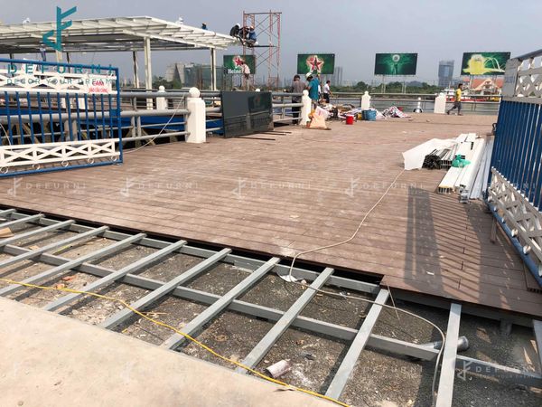 Không gian bến tàu nổi bật và sang trọng hơn với sàn gỗ nhựa ngoài trời