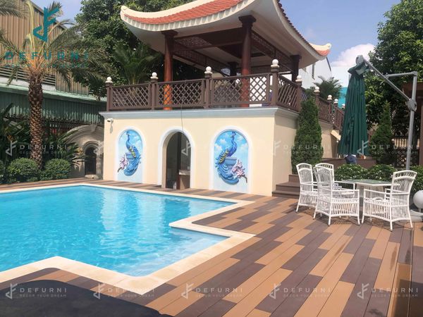3. Hạng mục thi công: Sàn gỗ ngoài trời khu vực hồ bơi, sân vườn; giàn hoa Pergola, Lan can, ghế ngồi.