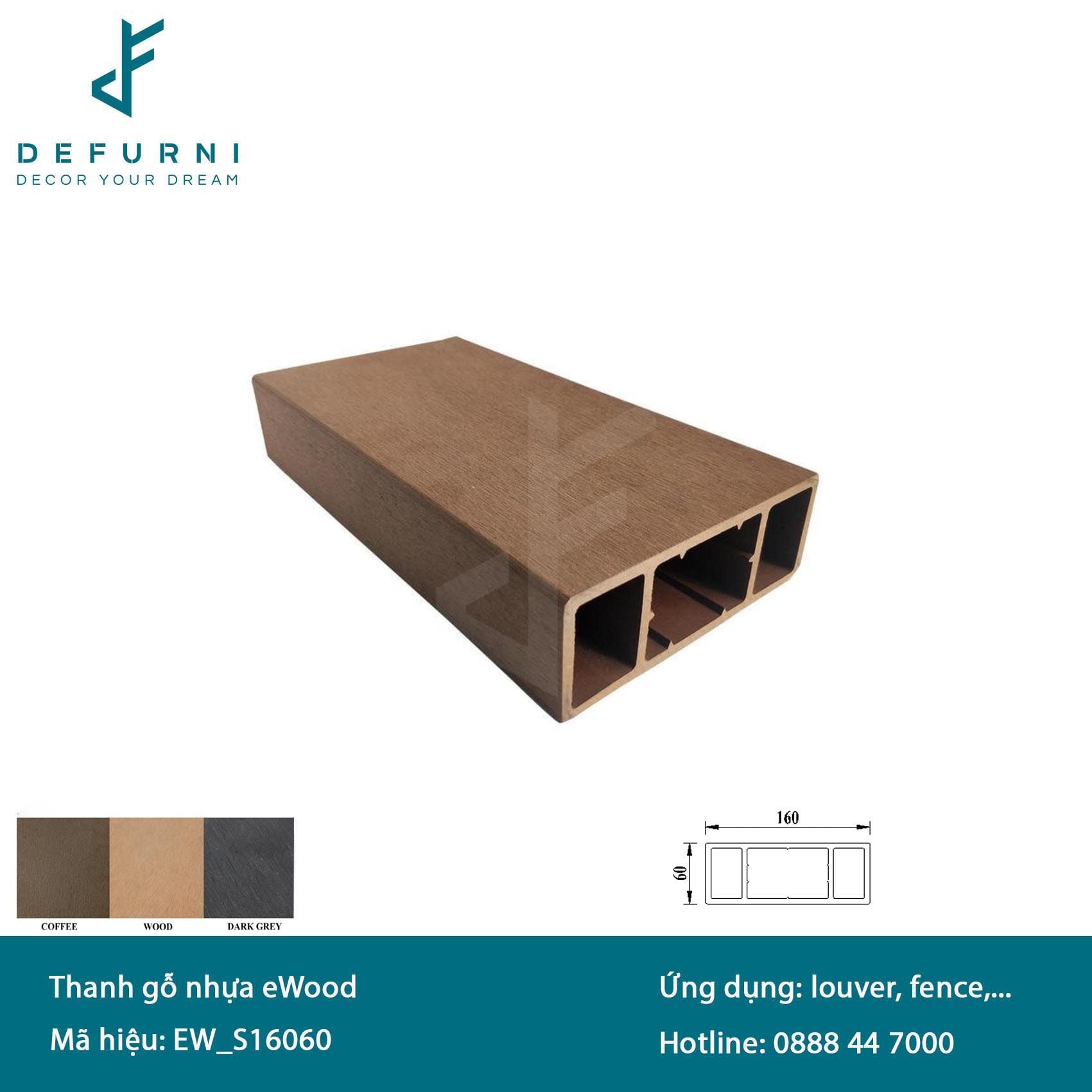 Thanh lam gỗ nhựa eWood là một sản phẩm độc quyền của Defurni, nổi trội hơn so với các vật liệu thông thường bởi nét mềm mại, tự nhiên trong từng vân gỗ, sự chắc chắn và cứng cáp trong cấu hình sản phẩm. Mang đến dòng vật liệu mang tính đột phá, có thẩm mỹ, tuổi thọ cao, ít chi phí bảo dưỡng, với giá thành hợp lý nhất.