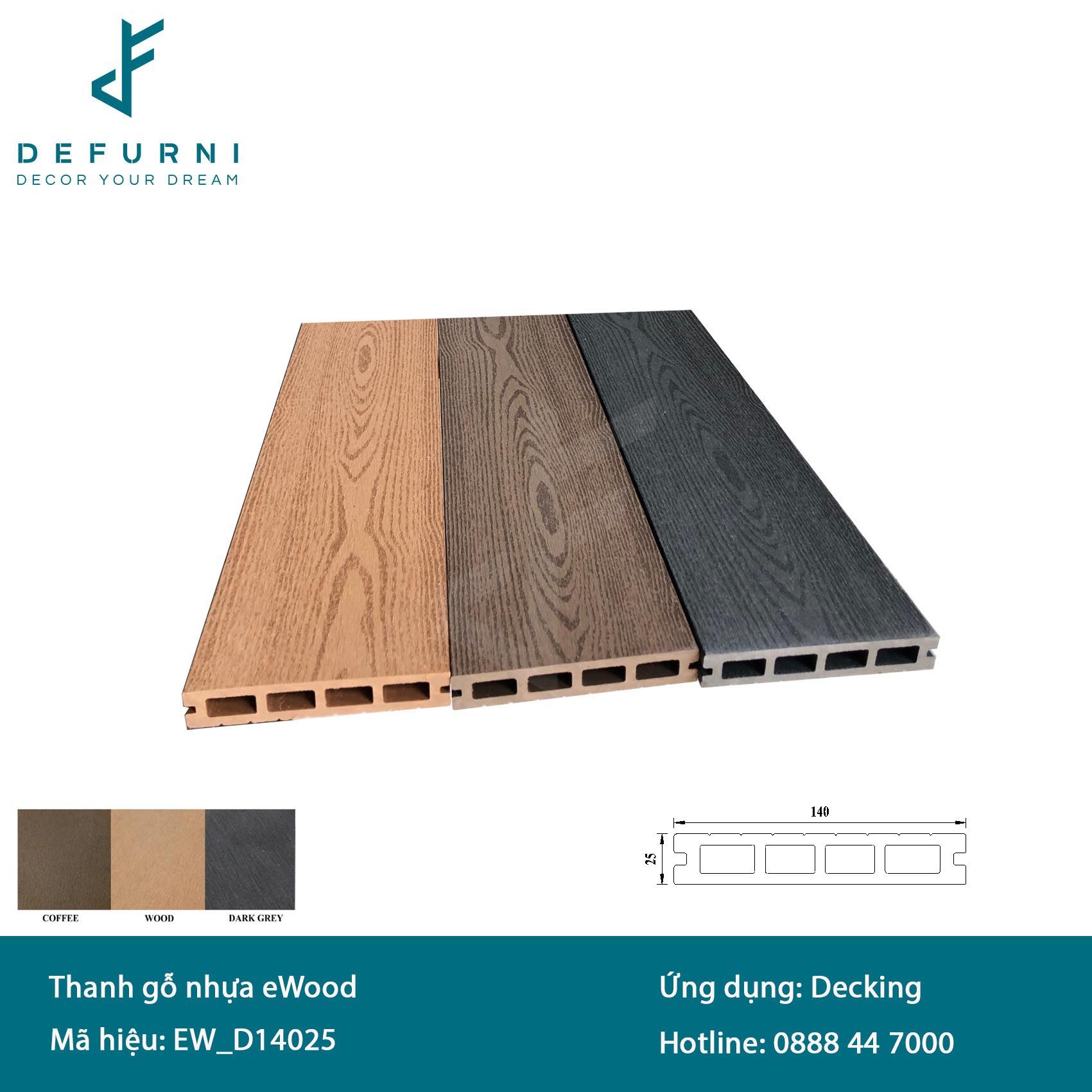 Sàn gỗ nhựa eWood là một sản phẩm độc quyền của Defurni, nổi trội hơn so với các vật liệu thông thường bởi nét mềm mại, tự nhiên trong từng vân gỗ, sự chắc chắn và cứng cáp trong cấu hình sản phẩm. Mang đến dòng vật liệu mang tính đột phá, có thẩm mỹ, tuổi thọ cao, ít chi phí bảo dưỡng, với giá thành hợp lý nhất.