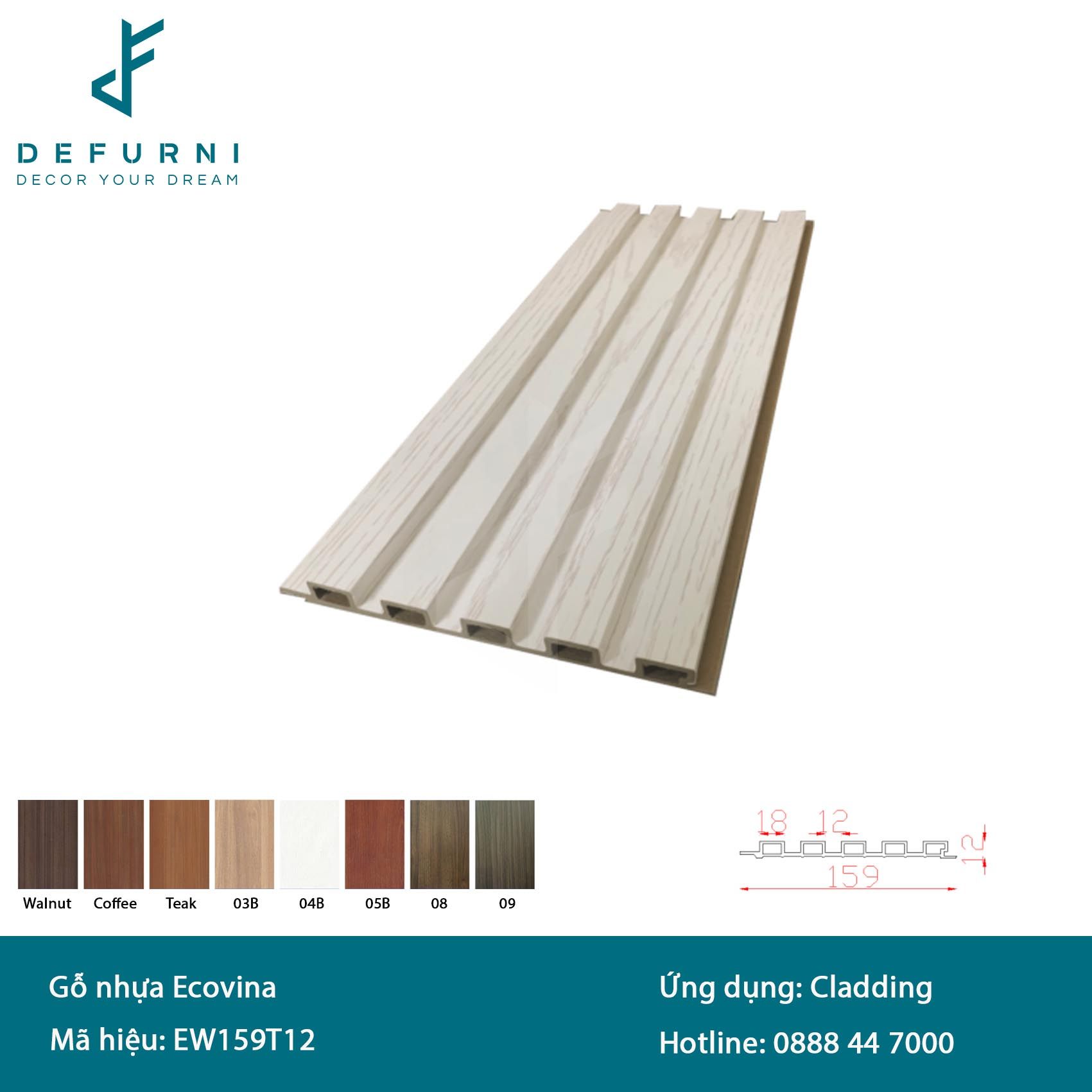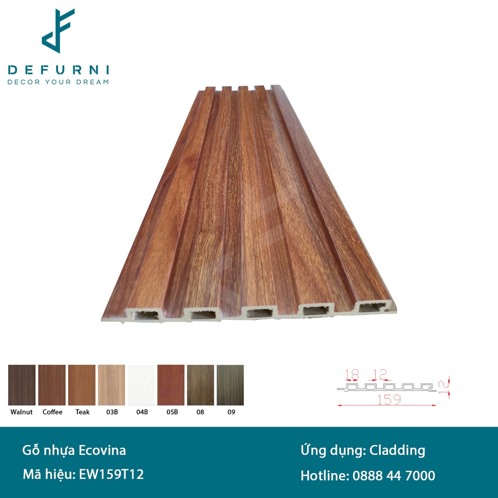 Màu sắc: Walnut, Coffee, Teak, màu phủ film 03B, 04B, 05B, 08, 09